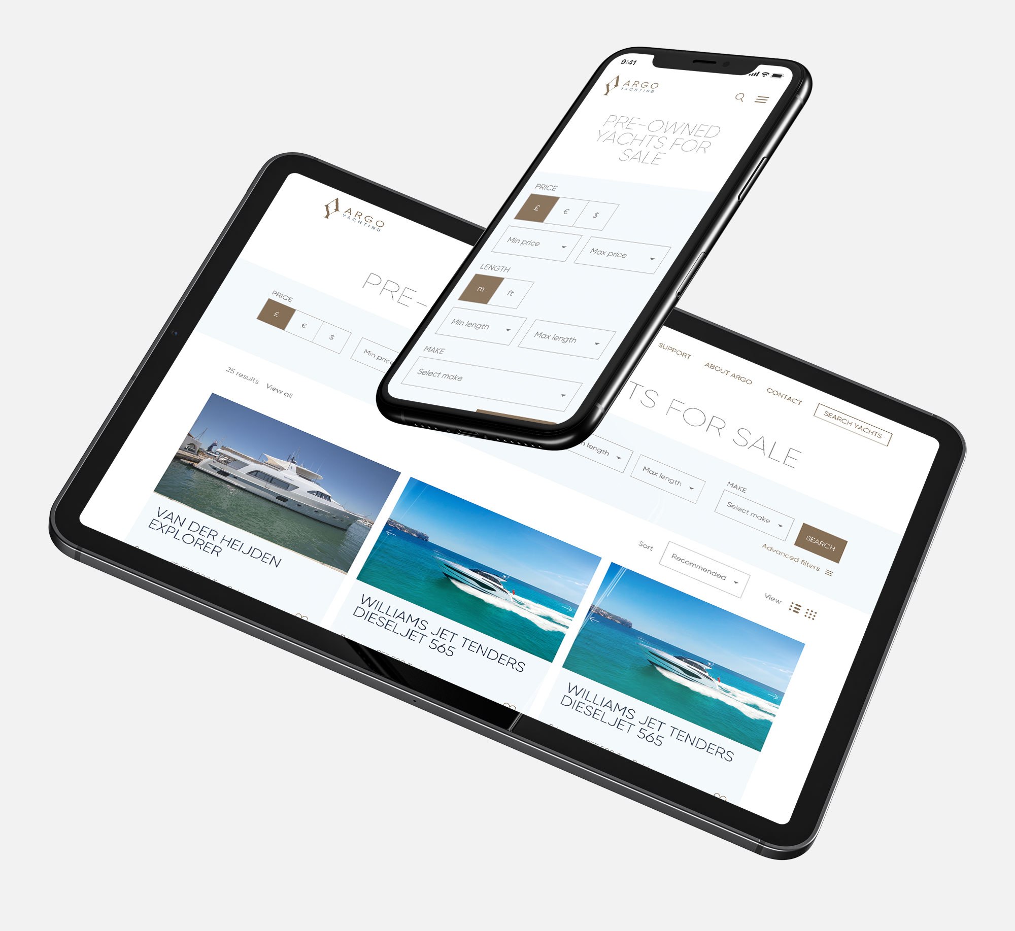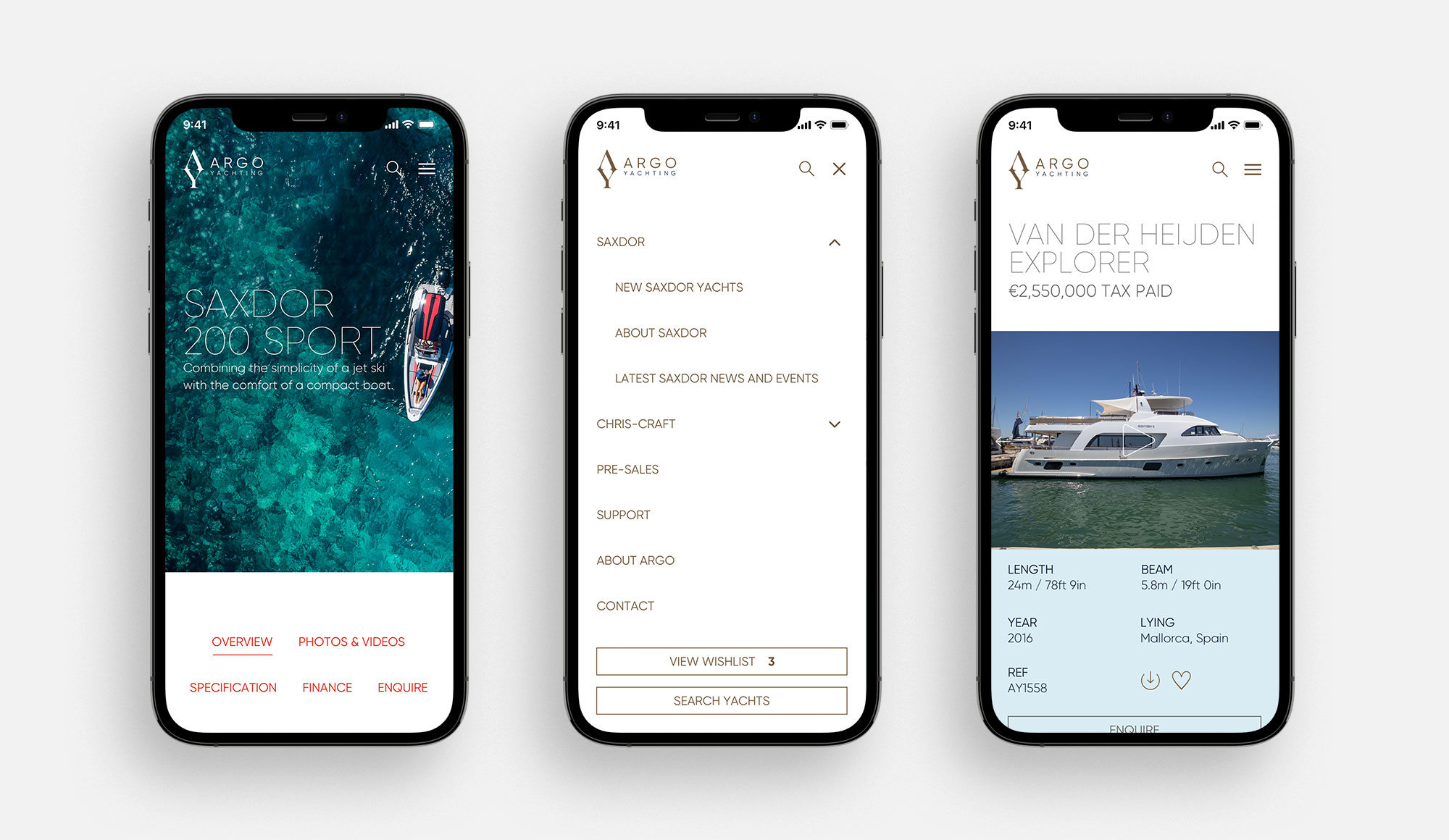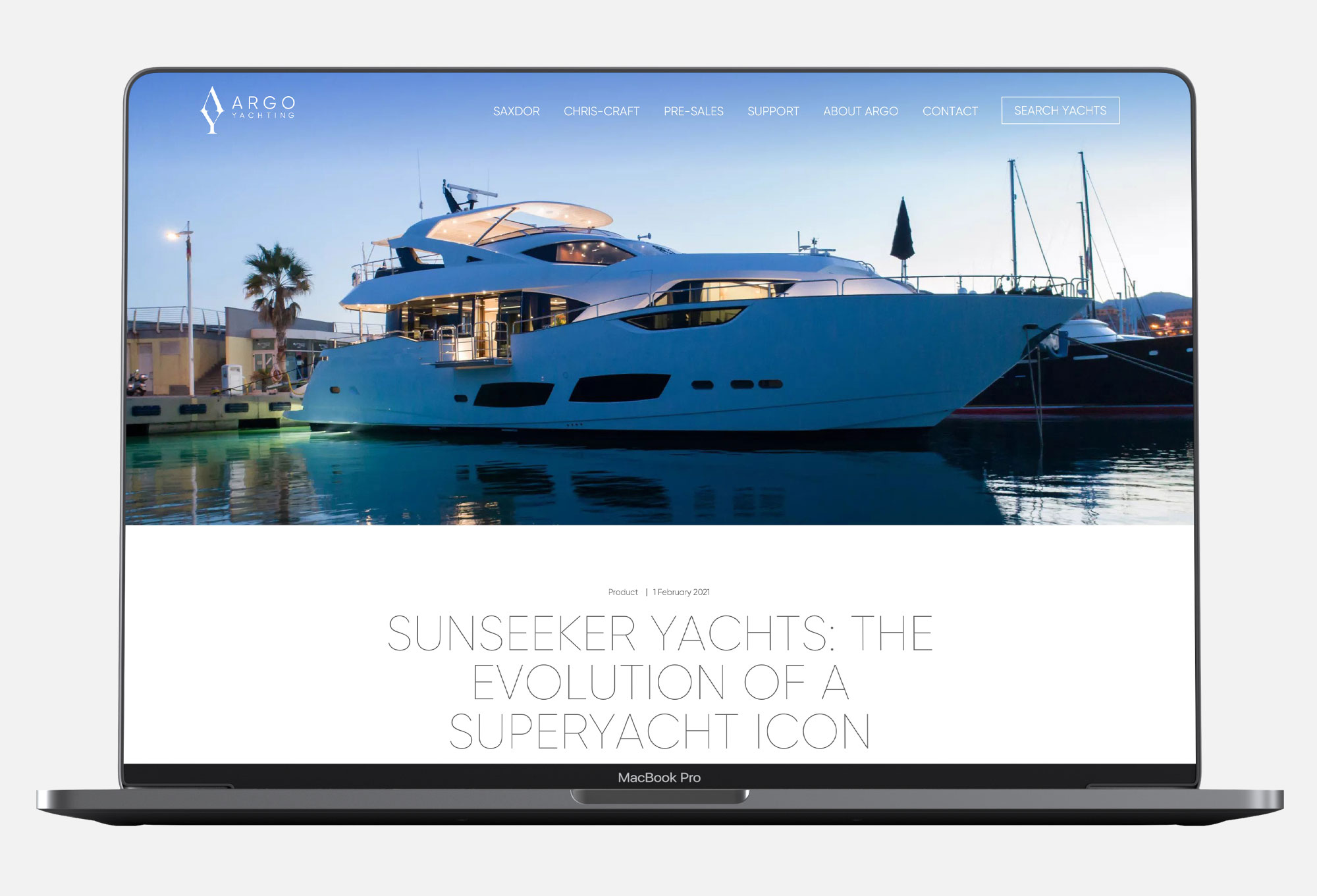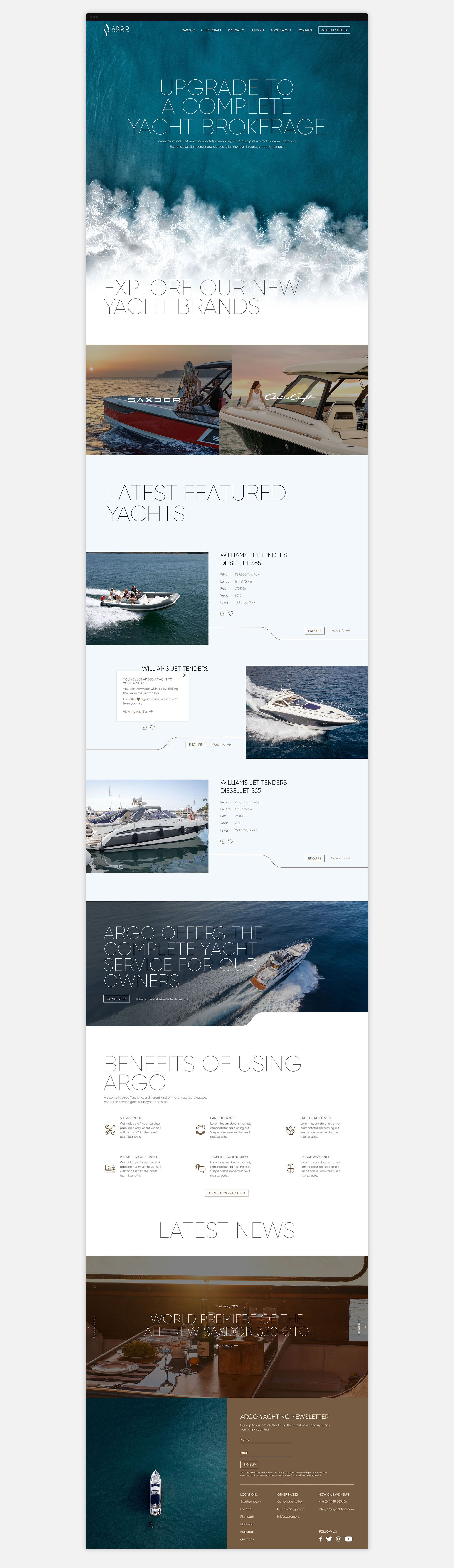 A full site design for luxury yacht sales company. Argo Yachting is a premium brokerage and yacht sales business that sells new and used yachts. Having previously worked with Argo Yachting, and their parent company, Princess Yachts in the UK I was tasked with designing a new site as the business expanded.