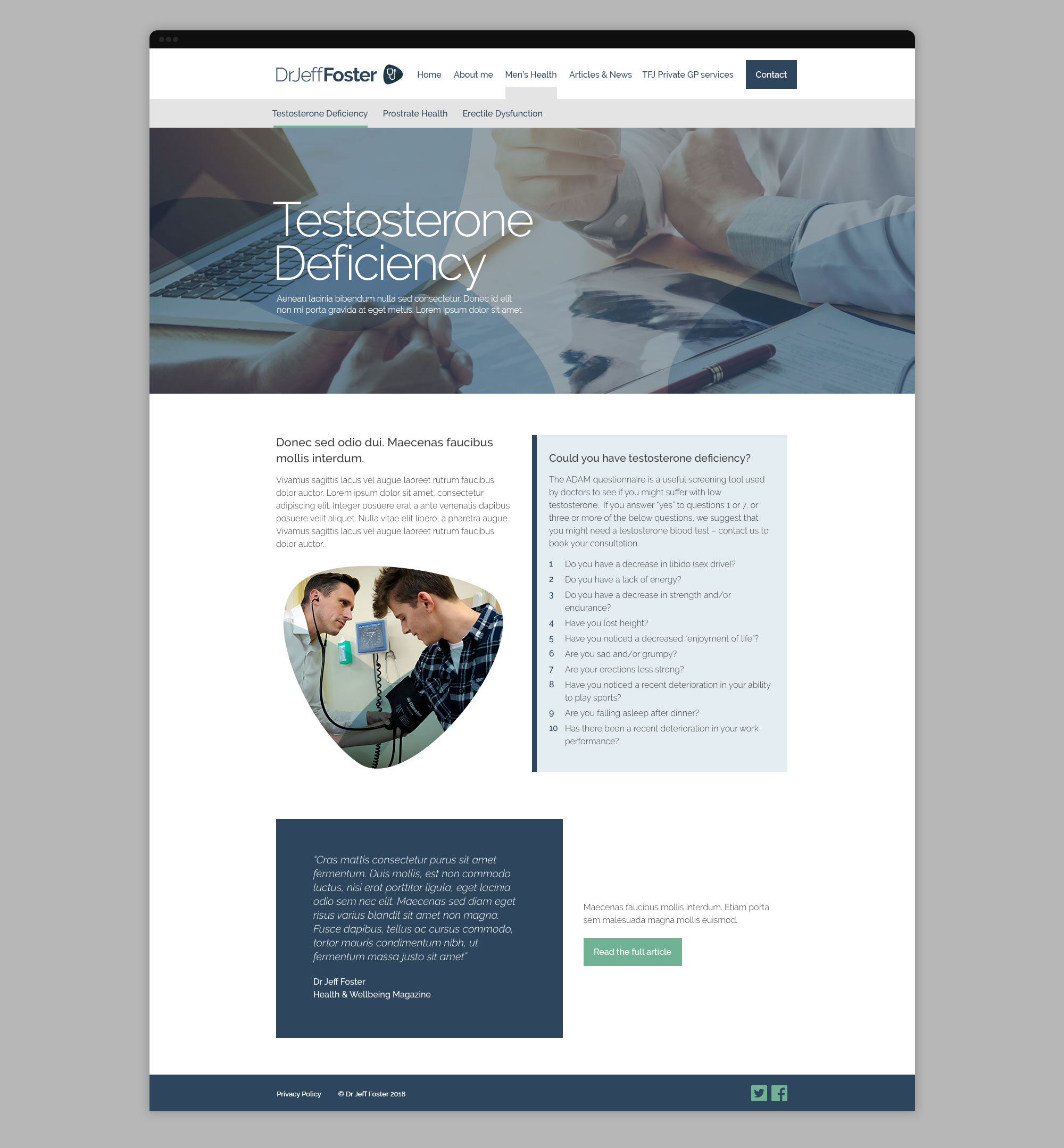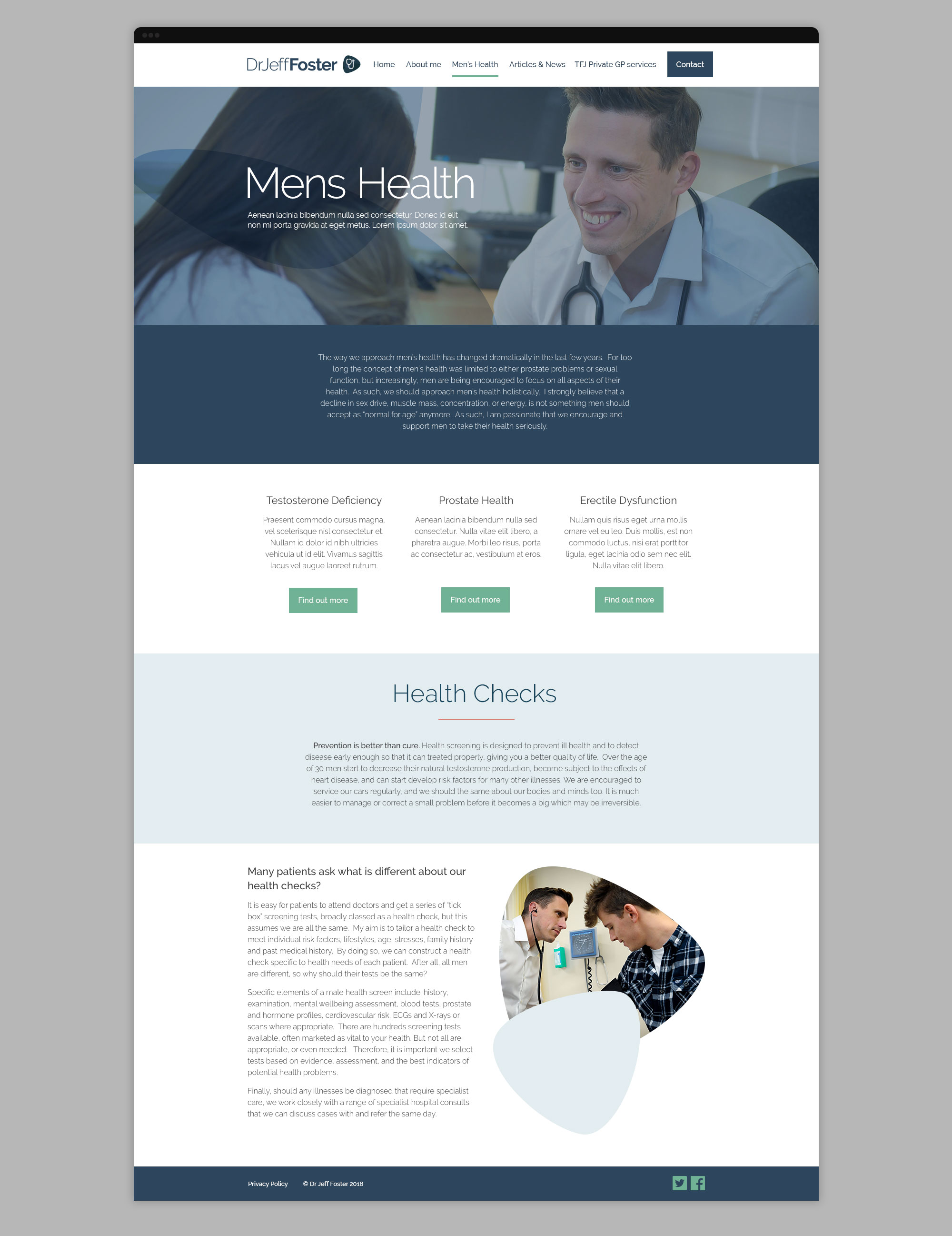 Creating a brand for a private GP practice along with a website reskin. Working independently, I created a new brand for Dr Jeff Foster, a private GP who specialises in men’s health. Dr Foster was quickly becoming the go-to expert on men’s Health, writing numerous articles for national publications, resulting in the requirement for a bold, recognisable brand.