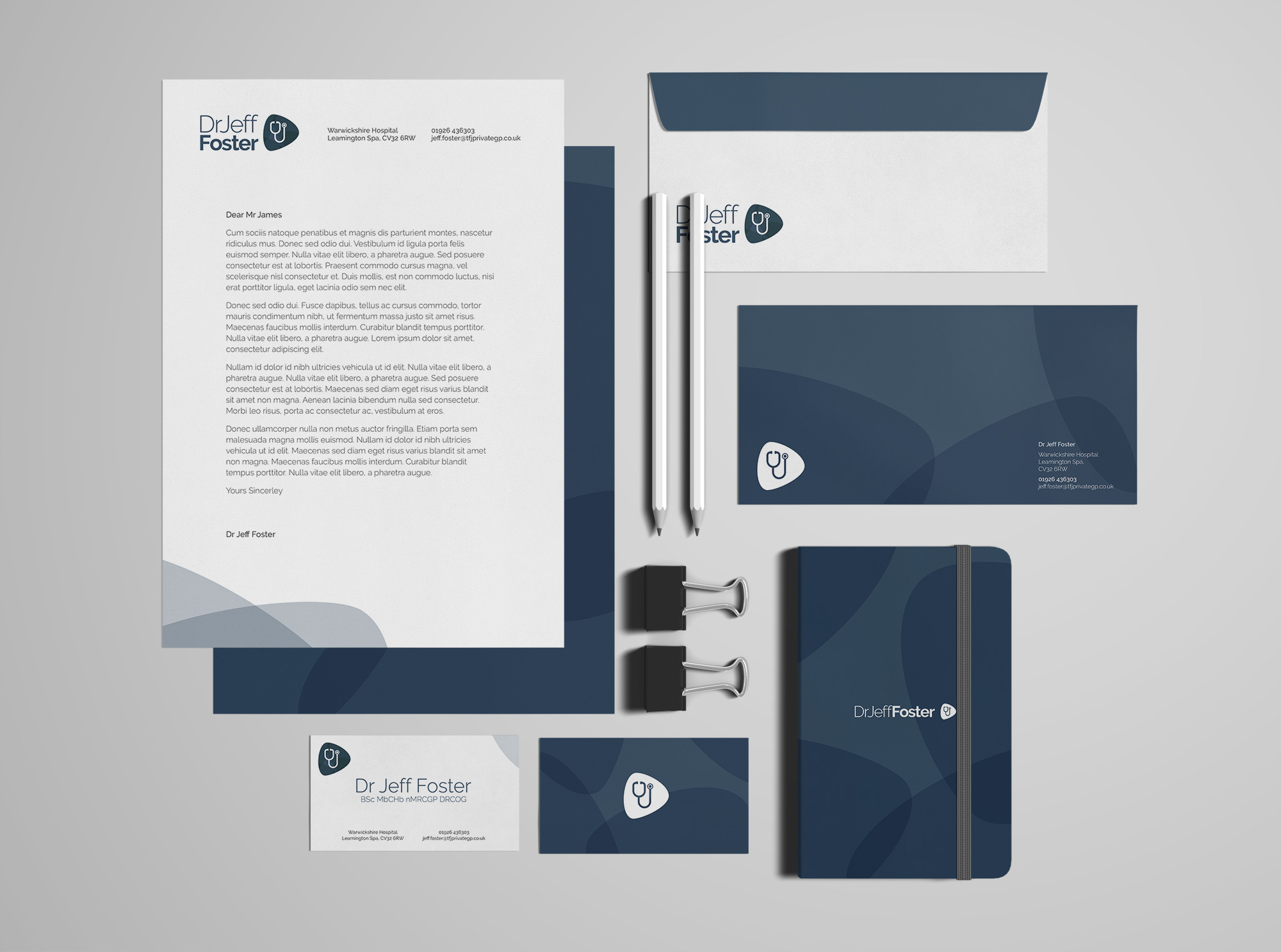 With a tight turn around, I created the lockup and iconography, working with the client to develop a final brand, which I then deployed by re-designing his practices current website. This was quickly launched in time for Dr Fosters upcoming PR activities.